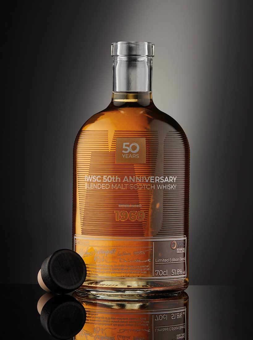 Disponibili in 2 capacità , le bottiglie sono decorate con le lettere IWSC stampate in rilievo, ciascuna costituita da 50 linee sottili, che rappresentano ogni anno di vita della competizione. Le firme di tutte le distillerie che hanno partecipato alla creazione di questo special blend sono state fedelmente riprodotte a stampa nella parte inferiore della bottiglia di whisky.